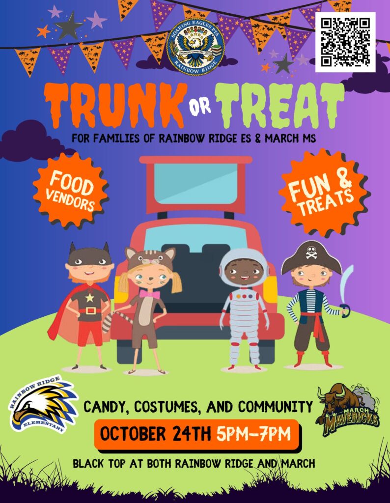 Join us for a spooktacular Trunk or Treat—costumes, candy, and fun for the whole school! 🎃👻